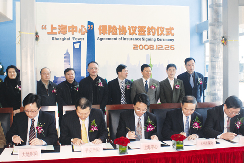 2008年12月26日,“上海中心”大廈保險簽約儀式在上海中心大廈建設(shè)發(fā)展有限公司隆