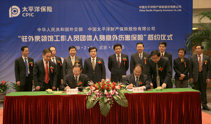 舉行了“駐外使領館工作人員團體人身意外傷害保險”合作協議簽約儀式。根據協議,從今年開始,太保將為全球各個國家和地區近250個使領館的5000多名