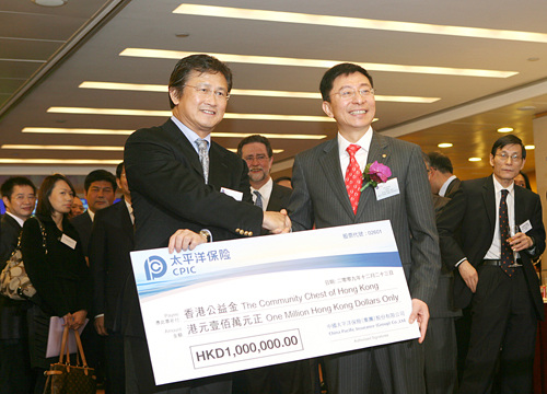 高國富代表公司向香港聯交所贈送上市紀念品——代表誠信的“中國用戶滿意鼎”珍藏版,“中國用戶滿意鼎”由中國質量協會于2005年授予中國太平洋保險。隨后,高國富代表公司向香港公益金捐贈100萬元港幣,用于慈善事業。香港公益金為香港非牟利及非政府資助之慈善機構,負責為所資助的社會福利機構籌募捐款,以鼓勵社群積極參與及捐贈,共同建立一個充滿愛心的社會。